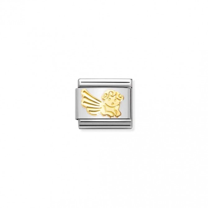 Original Nomination Classic Link in stainless steel and 18K yellow gold with Angel with Etched Detail. Made in Italy. Add a Guardian Angel to your bracelet to keep with you, through thick and thin!