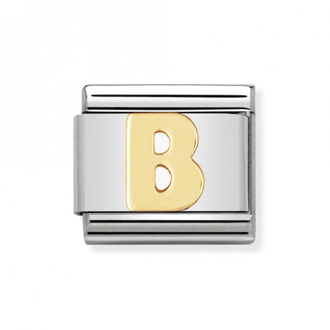 Original Alphabet Charm for Nomination's Composable Classic Bracelet with Letter B in stainless steel and bonded yellow gold. Available Charm versions: A-Z. Made in Italy. The perfect birthday gift.
