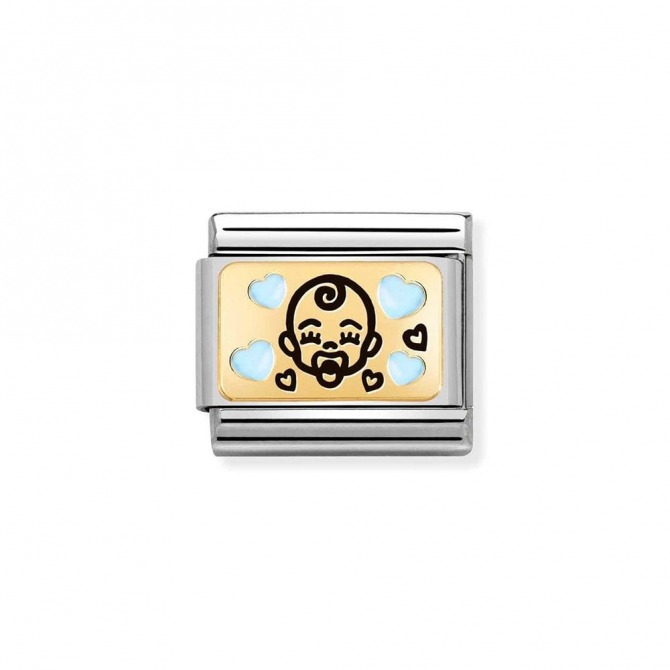 The Classic Gold Blue Baby Charm from Nomination is the perfect charm to celebrate a beautiful new arrival. Crafted from stainless steel with gold and blue enamel detailing, this is a lovely gift for any new parent.