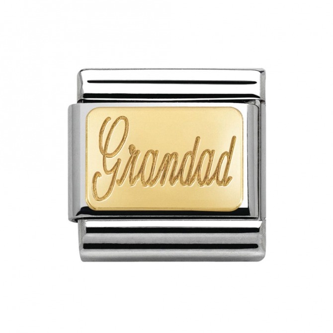 Composable Classic Charm for original bracelet in stainless steel and bonded yellow gold with message. Made in Italy. Keep always with you the love for your Grandad. Would make a wonderful Father's Day gift.