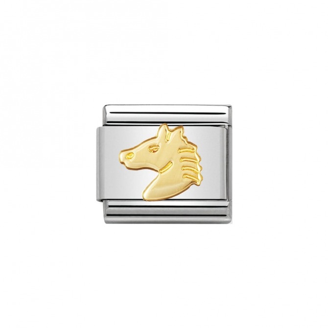 Charm for Original Classic Composable Bracelet in stainless steel and bonded yellow gold with Horse's Head. Made in Italy. Add your passions to your bracelet.
