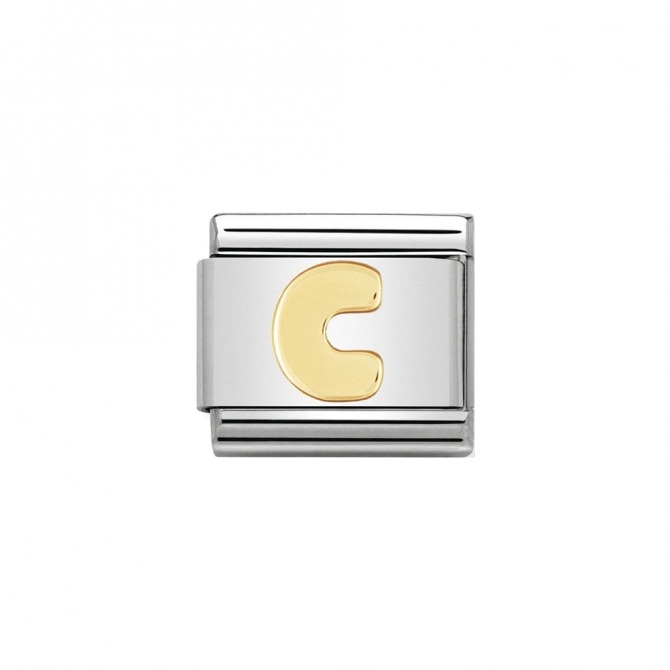 Nomination Original Charm for Composable Classic Bracelet with Alphabet Letter C in stainless steel and bonded yellow gold. Available Charm versions: A-Z. Made in Italy. Add your loved one's initials to your bracelet!