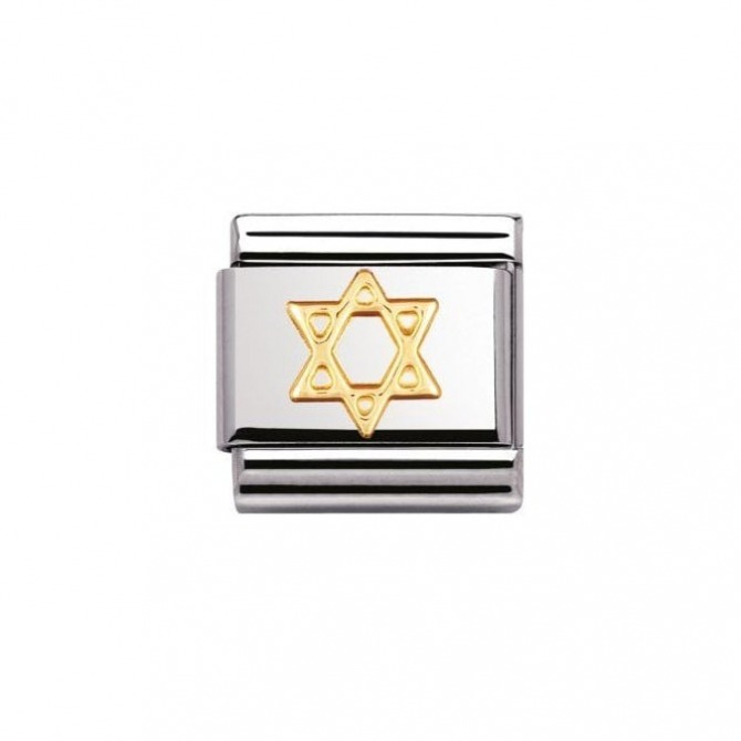 Nomination Original Charm for Classic Composable Bracelet with Religious Star of David symbol in stainless steel and bonded yellow gold. Made in Italy. Celebrate your spiritual side.