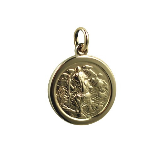 14ct Yellow Gold On Silver 20mm Round St Christopher Pendant