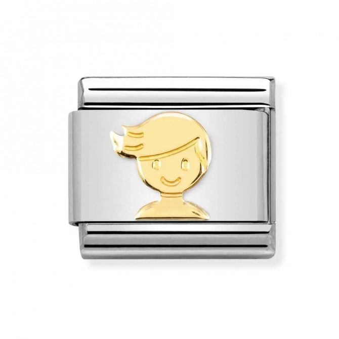 Original Nomination Link for Composable Classic Bracelets in stainless steel and 18K gold with Boy symbol. Celebrate your son who keeps you on your toes with this precious Link. Made in Italy.