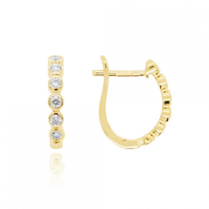 A series of diamonds set in rub-over 18ct gold gives the appearance of a popular design known as “bubbles”. The Earrings have a secure and easy hinged fitting. Diamonds are always a girls best friend. Contemporary, a modern classic design perfect for those who have diamonds as their April birthstone.