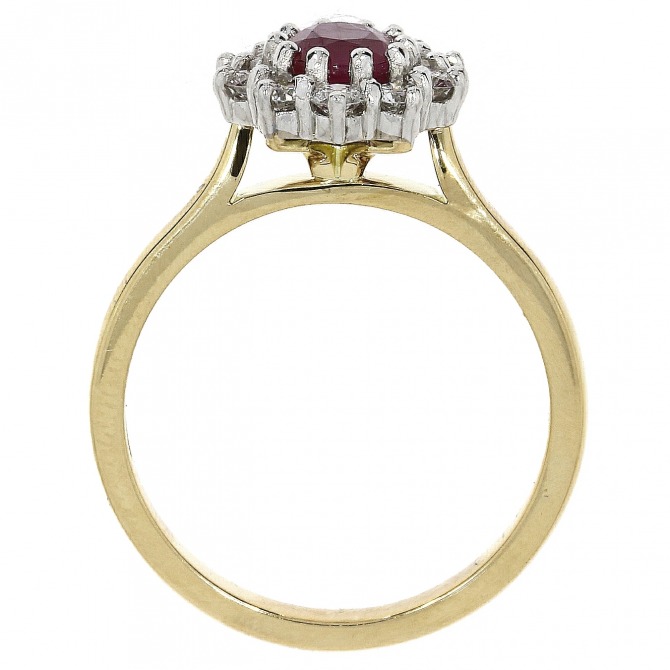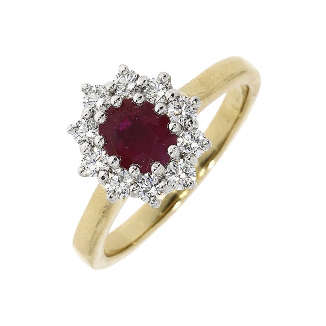 18ct yellow gold with diamond (0.44ct) and ruby (0.82ct) cluster ring. Perfect for a July Birthday!