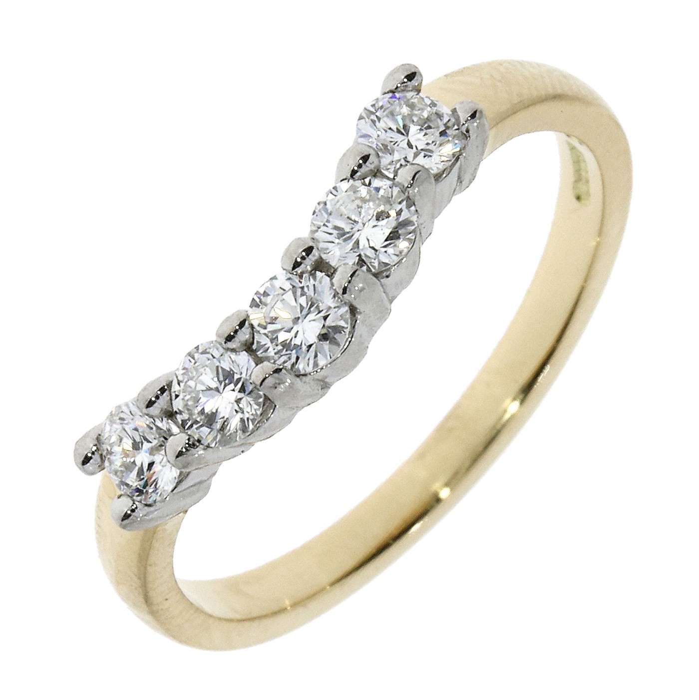 18ct gold with 5 diamonds (0.55ct) which are claw set on this stunning eternity ring.