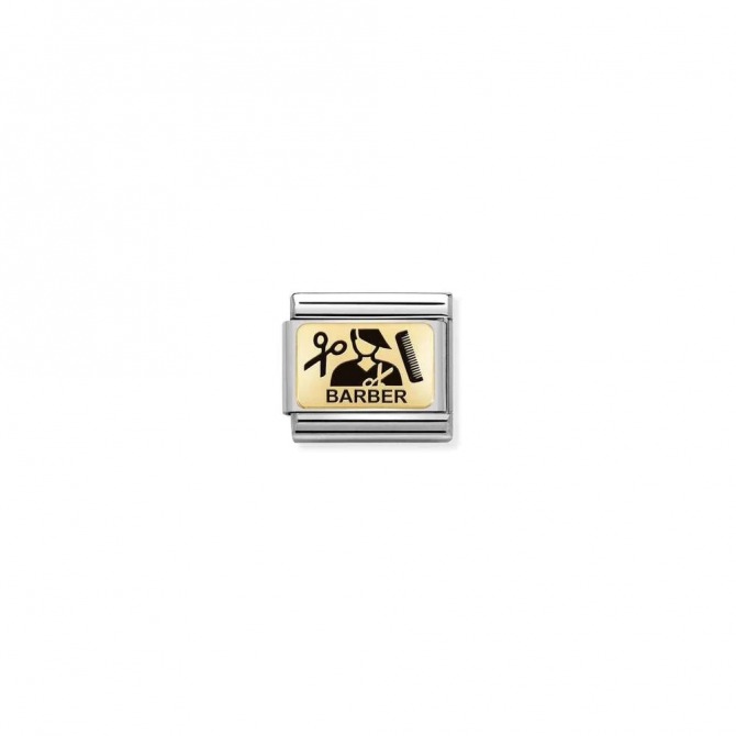 Original Nomination Link for Composable Classic Bracelets in stainless steel and 18K gold with BARBER symbol. Made in Italy. This Link is the perfect gift for someone who knows the importance of an impeccable beard and a tight fade.