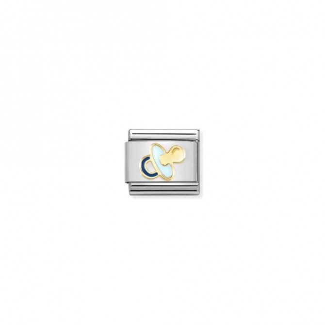 Original Nomination Link for Composable Classic Bracelets in stainless steel and 18K gold with coloured enamel Light Blue Pacifier symbol. This Link is the perfect way to say: It’s a boy! Made in Italy.