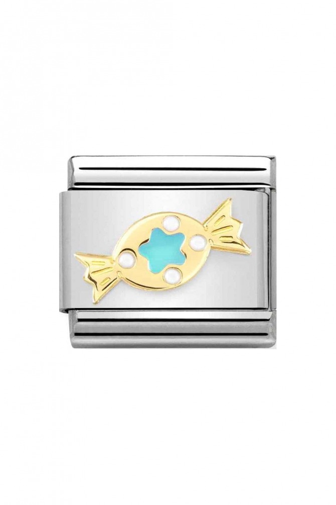 Original Nomination Link for Composable Classic Bracelets in stainless steel and 18K gold with Turquoise Green enamel with Turquoise Green Sweet symbol. Made in Italy. Choose this new Link to remember the joys of childhood!