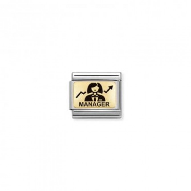 Original Nomination Link for Composable Classic Bracelets in stainless steel and 18K gold with MANAGER symbol. Made in Italy. This Link is the perfect gift for that natural leader who shows the world through skill and hard work how it is done.