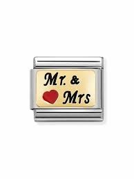 Original Nomination Link for Composable Classic Bracelets in stainless steel and yellow gold and Red enamel with MR & MRS text. Made in Italy. This is the perfect Link to gift to a bride and groom that have or are about to tie the knot!