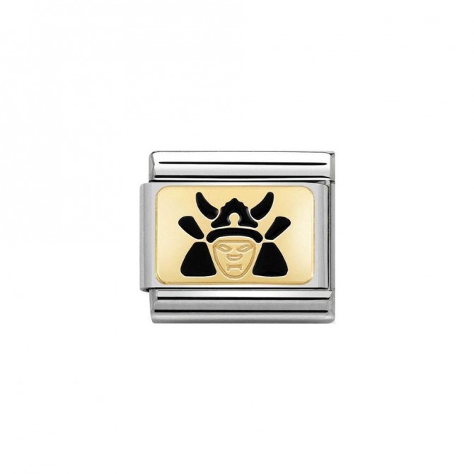 Charm for the original Composable Classic bracelet in stainless steel, bonded 18ct yellow gold and enamel. Made in Italy. A Charm dedicated to traditional Japanese warriors.