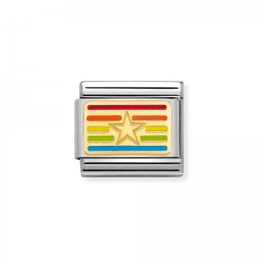 Original Nomination Classic Link in stainless steel and 18K yellow gold with Star with Etched Detail. Made in Italy. Capture the light and energy of a star on your Composable bracelet with this precious Link.