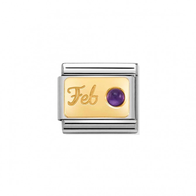 Original Nomination Link for Composable Classic Bracelets in stainless steel and 18K gold with FEB and Amethyst birthstone. Made in Italy. This Link is the perfect addition to the Composable bracelet of someone with a February birthday! Discover all of our birthstone Links!