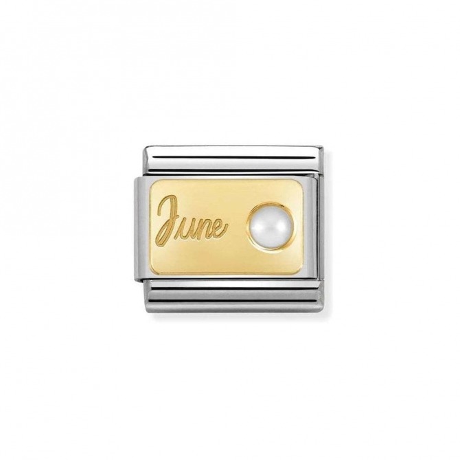 Original Nomination Link for Composable Classic Bracelets in stainless steel and 18K gold with JUNE and White Pearl birthstone. Made in Italy. This Link is the perfect addition to the Composable bracelet of someone with a June birthday! Discover all of our birthstone Links!