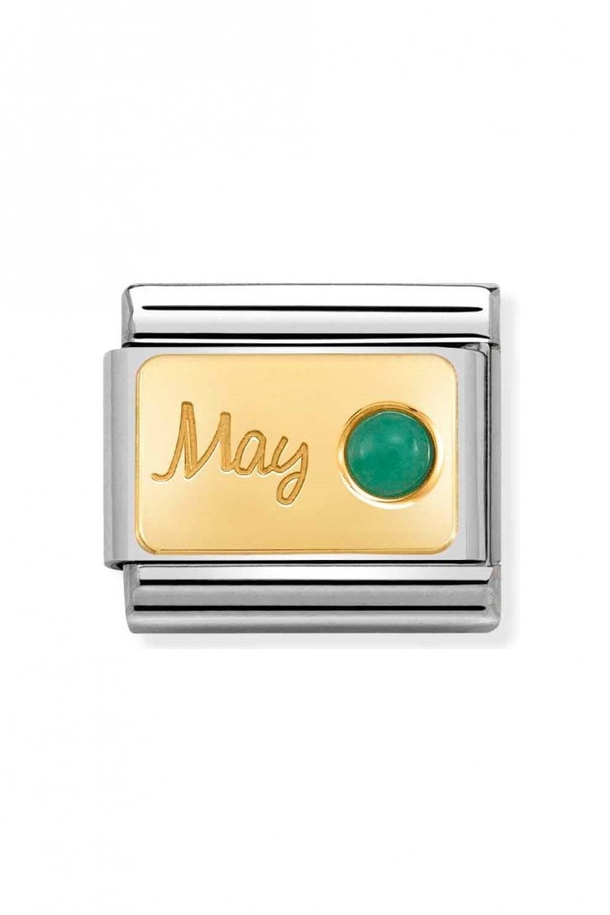 Original Nomination Link for Composable Classic Bracelets in stainless steel and 18K gold with MAY and Emerald birthstone. Made in Italy. This Link is the perfect addition to the Composable bracelet of someone with a May birthday! Discover all of our birthstone Links!