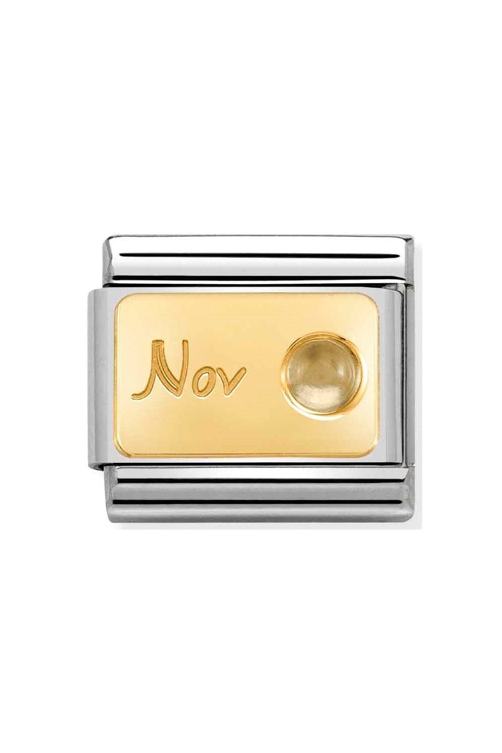 Original Nomination Link for Composable Classic Bracelets in stainless steel and 18K gold with NOV and Citrine birthstone. Made in Italy. This Link is the perfect addition to the Composable bracelet of someone with a November birthday! Discover all of our birthstone Links!