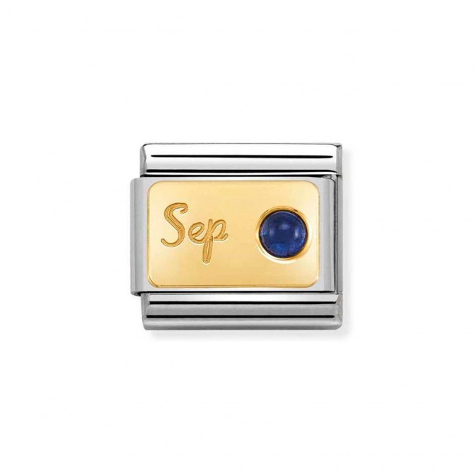 Original Nomination Link for Composable Classic Bracelets in stainless steel and 18K gold with SEP and Sapphire birthstone. Made in Italy. This Link is the perfect addition to the Composable bracelet of someone with a September birthday! Discover all of our birthstone Links!