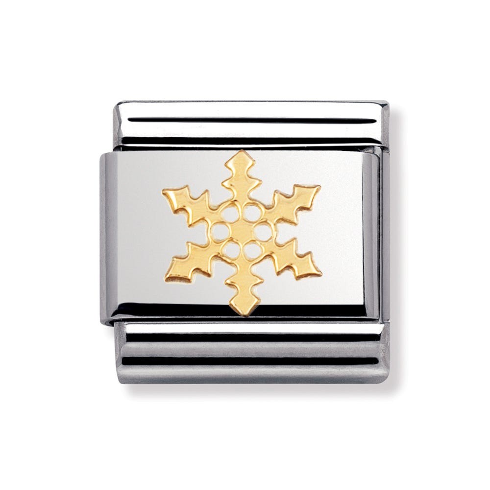Original Nomination Charm in stainless steel and bonded yellow gold for Composable Classic Bracelet with Christmas Snowflake symbol. Made in Italy. Celebrate nature's beauty and wonder with a precious Charm.