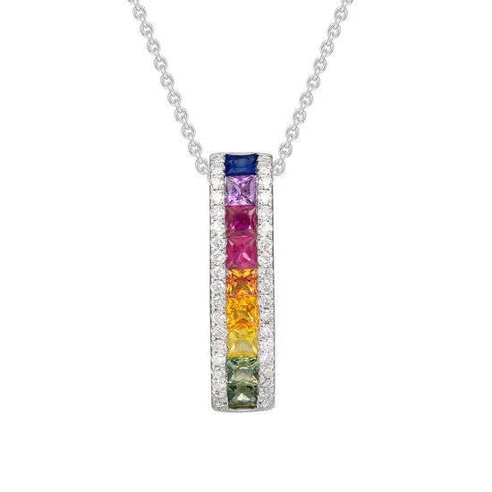 18ct white gold multi coloured diamond (.17) and sapphire (.64) pendant on an 18ct white gold chain.