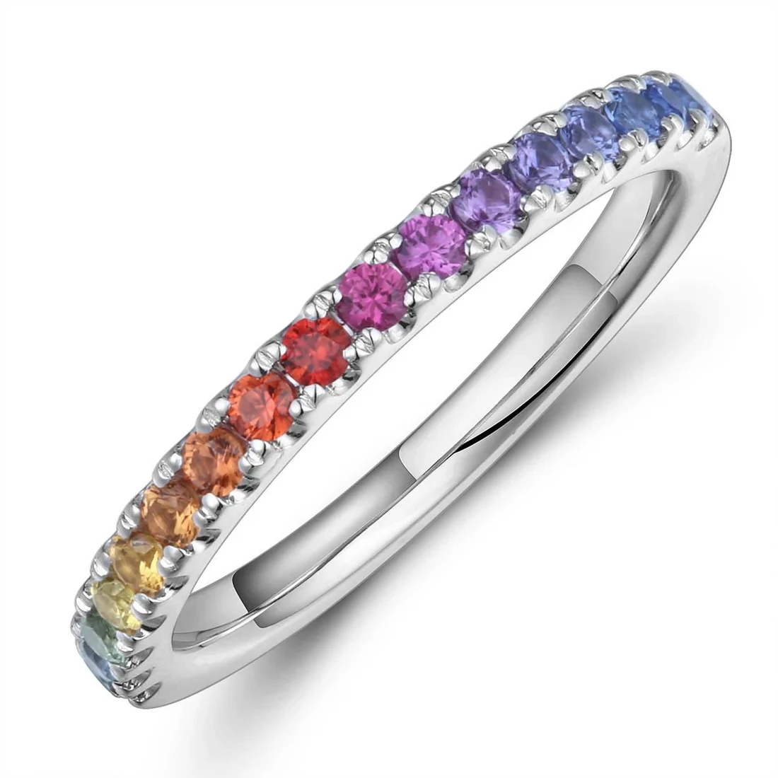 18ct white gold ring decorated with multi coloured sapphires (0.42ct).