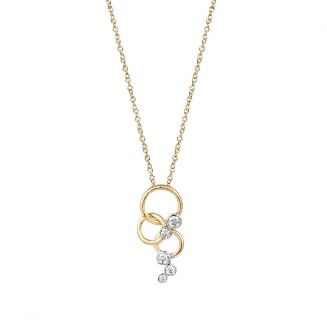 18ct white and yellow gold open circles pendant decorated with diamonds (0.40ct).