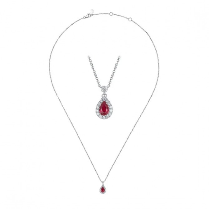 18ct white gold diamond (.17) and ruby (.46) pendant on an 18ct white gold chain.