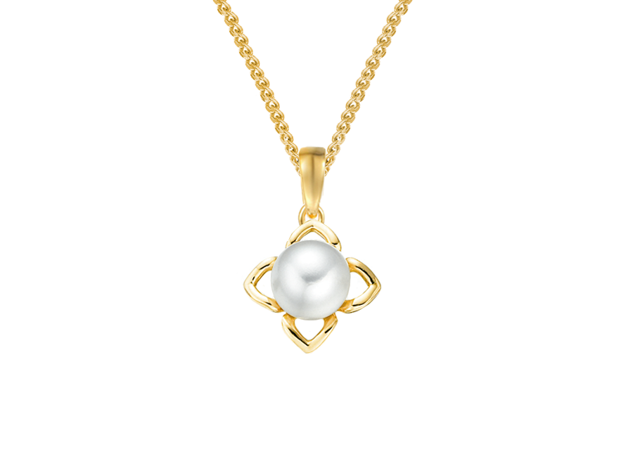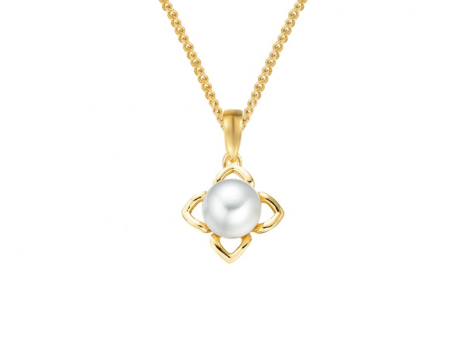 9ct yellow gold flower pendant set with a freshwater pearl.