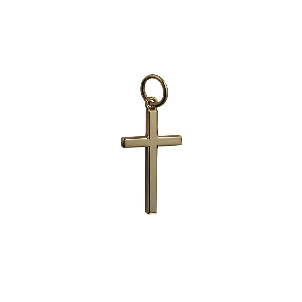 9ct yellow gold 20x12mm hand engraved line border solid block Cross. Handmade from 2 mm by 2 mm square wire, the back and sides are also plain highly polished. Handmade and hand polished in our Birmingham factory. Please note due to the Handmade nature of this product weights, dimensions & measurements can slightly vary.