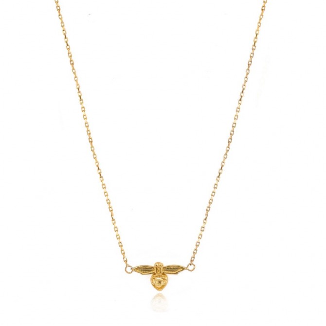 A buzzing bee perfectly balanced in 9ct Yellow Gold.Engraved detailing adds interest to the wings and body of these "beeautiful" insects.Supplied on a fixed delicate trace chain.Matching Bracelet and earrings are also available.