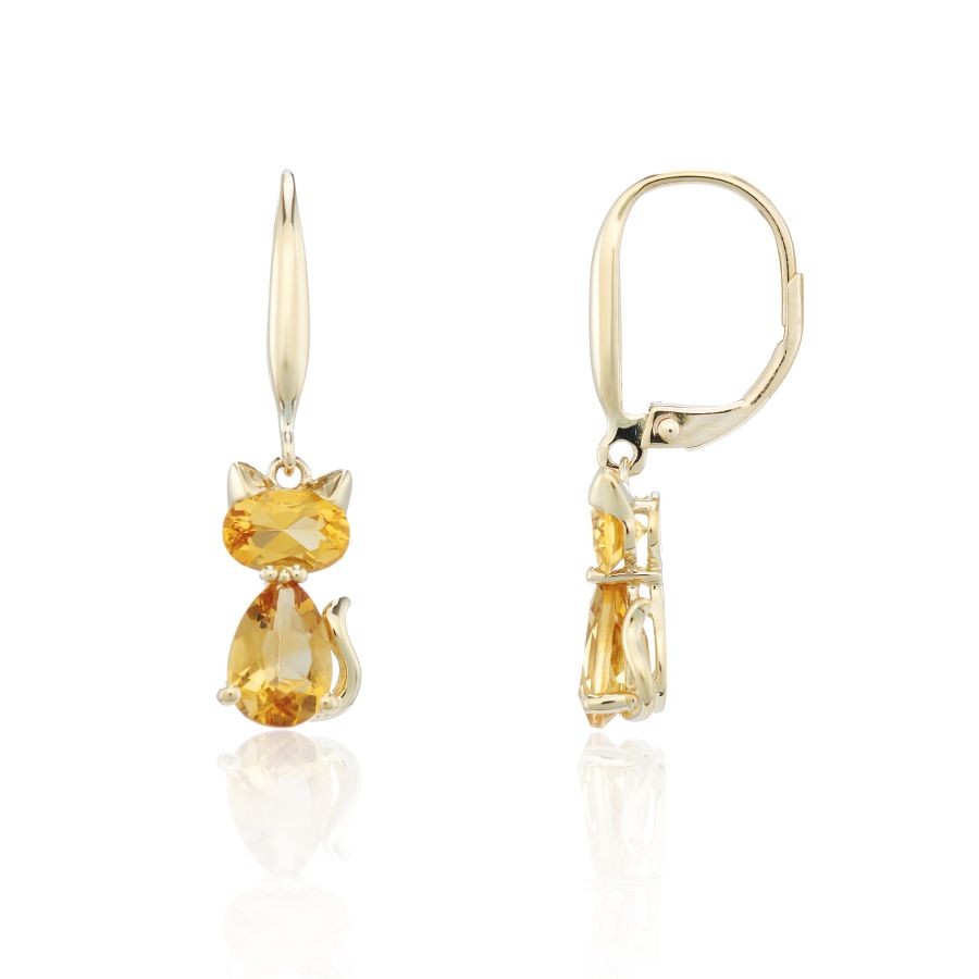 9ct Gold Citrine Cat Drop Earrings