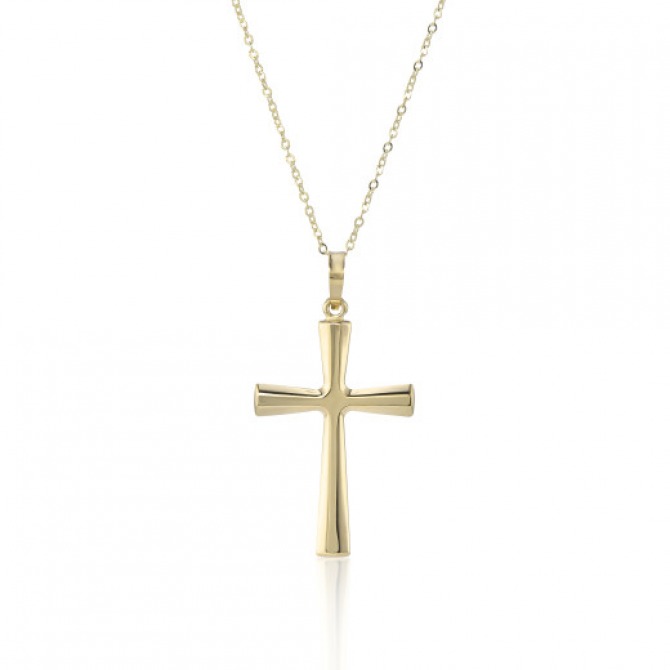 A sophisticated 9ct yellow gold cross pendant that adds a touch of grace to your ensemble. Its sleek design and impeccable craftsmanship make it an ideal accessory for both casual wear and special events.