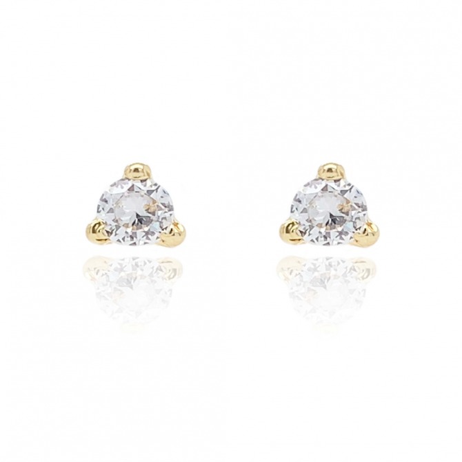 Quirky little Yellow Gold studs with a triangular design and a single claw-set round Cubic Zirconia in each Earring. A modern take on the classic Gold stud Earrings style.