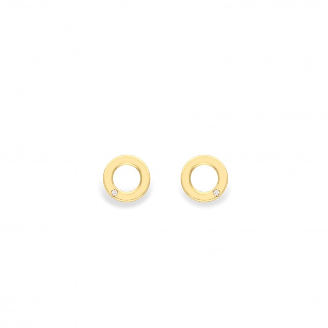 9ct yellow gold circular stud earrings set a diamond.