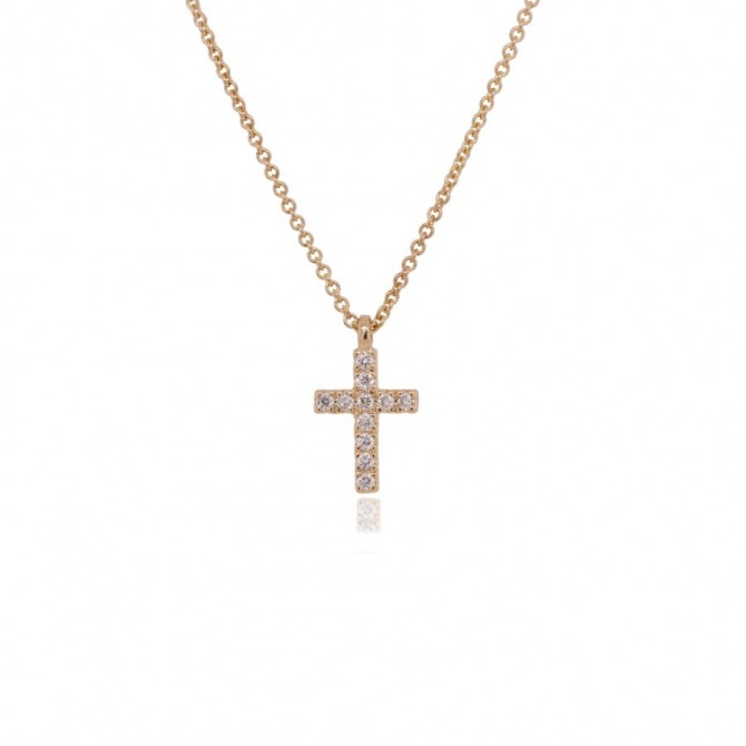 A sparkling and symbolic cross Pendant Necklace in Yellow Gold with matching fine chain. A beautiful and meaningful gift, particularly for life's important milestones and for those who have Diamond as their April birthstone.