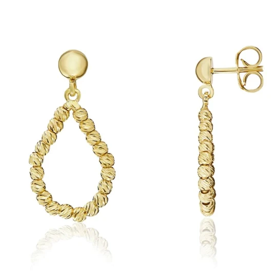 9ct Gold Diamond Cut Bead Pear Shape Drop Earrings