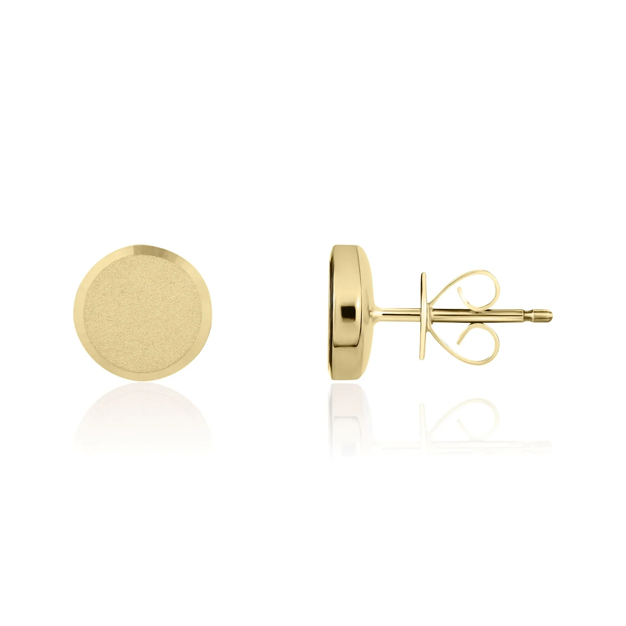 9ct yellow gold 10mm flat disc stud earrings with a satin finish.