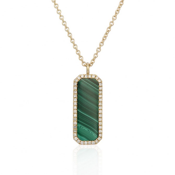 9ct Gold with Diamond & Malachite Pendant & Chain