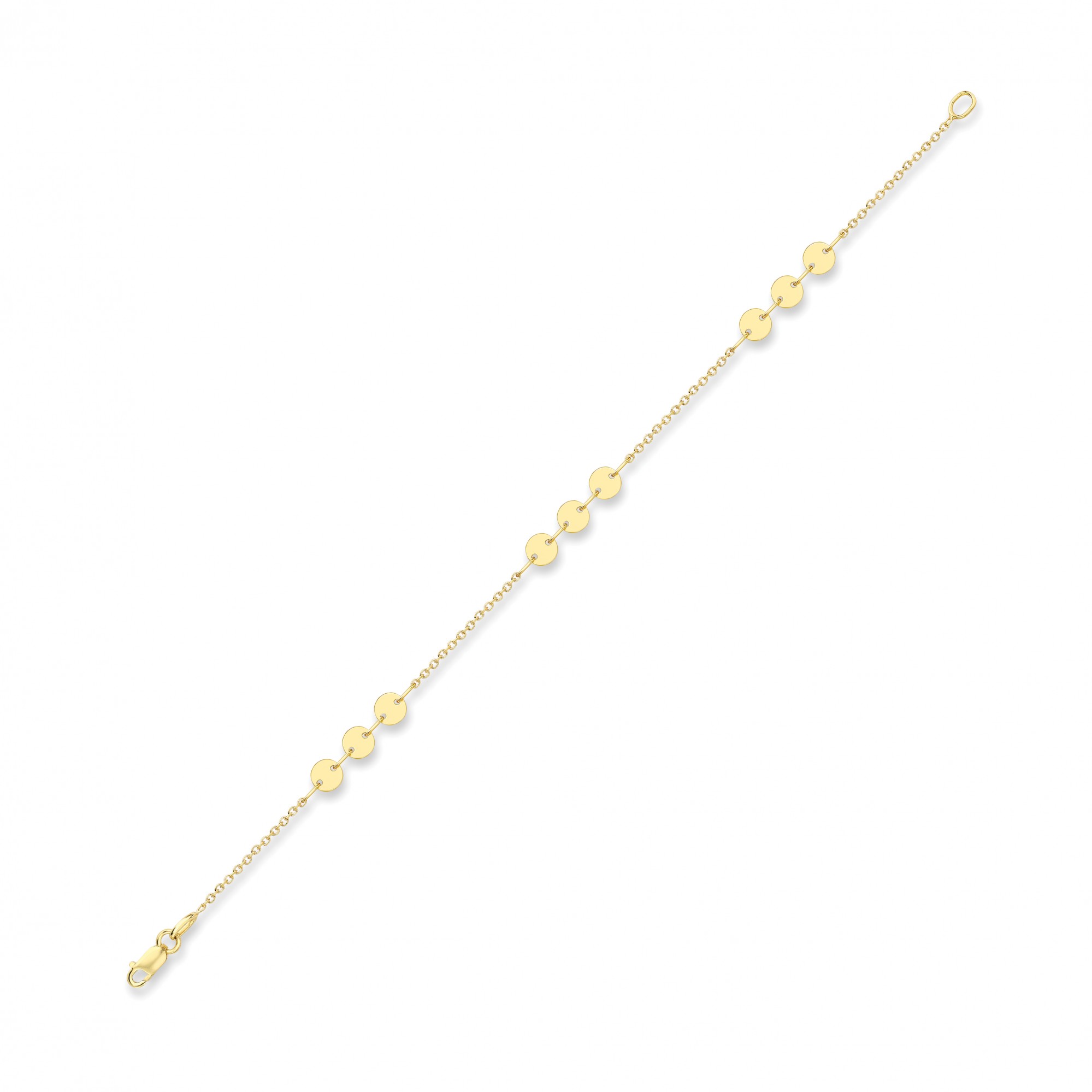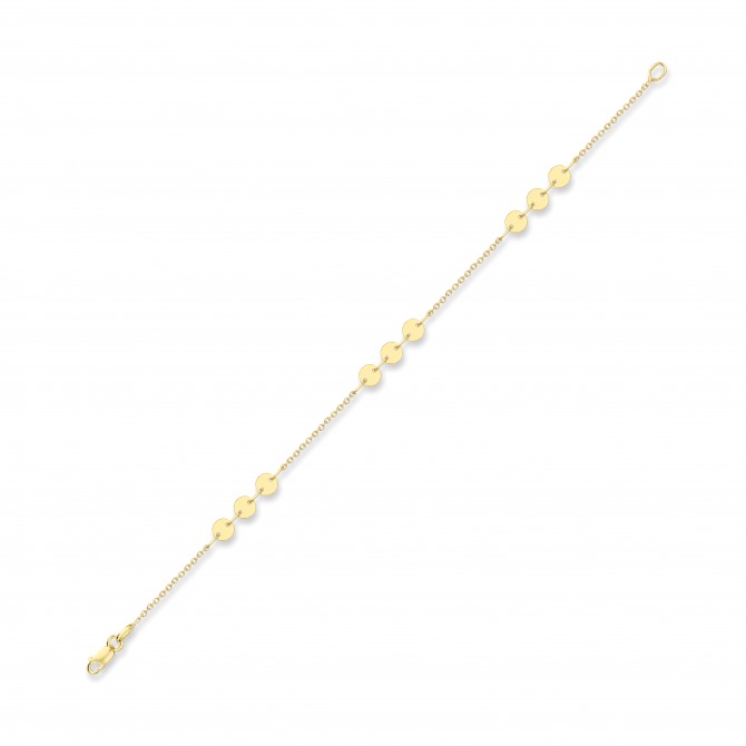 9ct yellow gold bracelet featuring three stations of three discs evenly spread over the length.