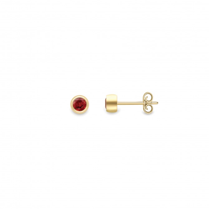 9ct yellow gold stud earrings set with garnet. Perfect for a January birthday.