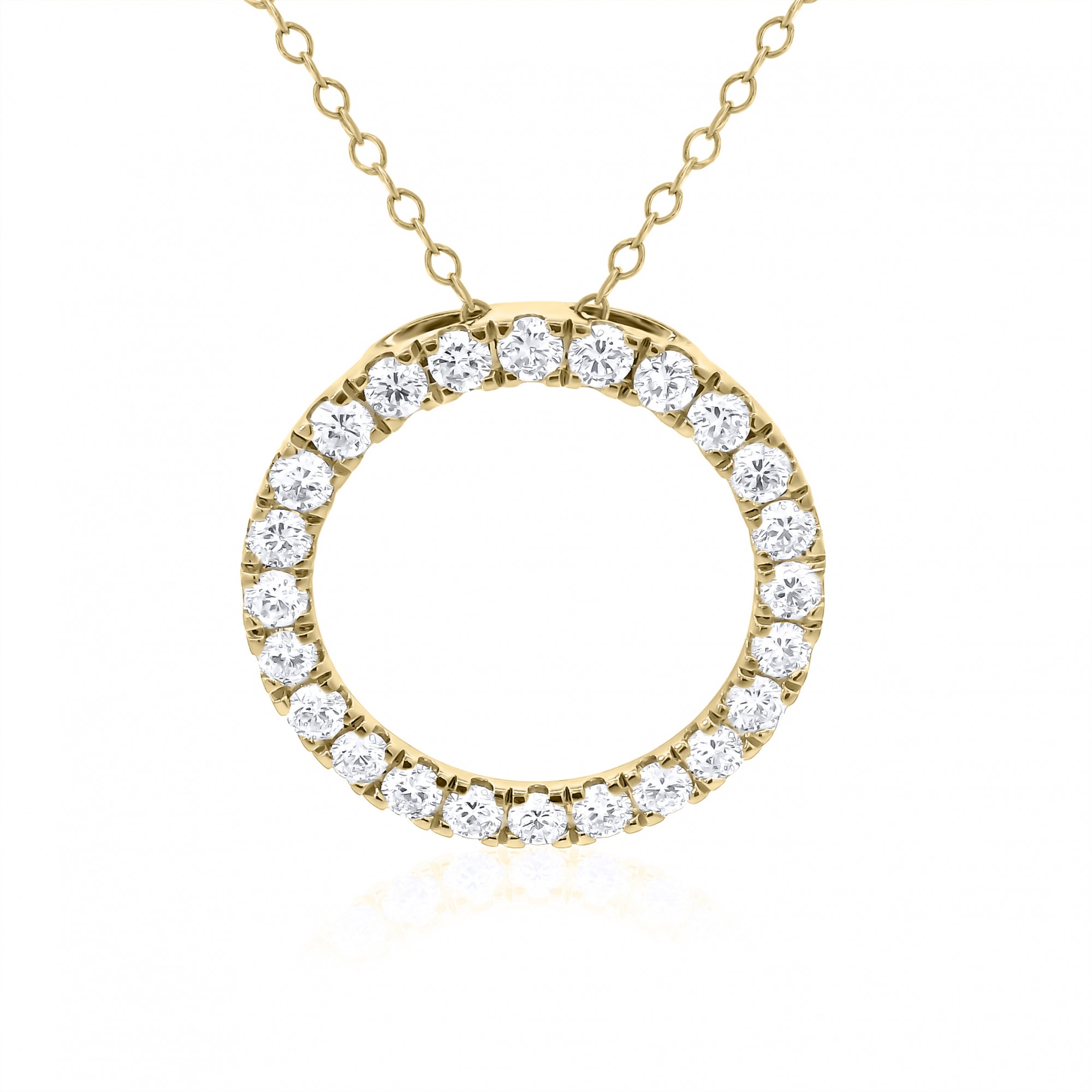 This stunning 9ct gold halo pendant features claw set round brilliant cut lab grown diamonds suspended from a 9ct gold trace chain. The perfect addition to any jewellery box. D-E. VS1. 1.00ct.