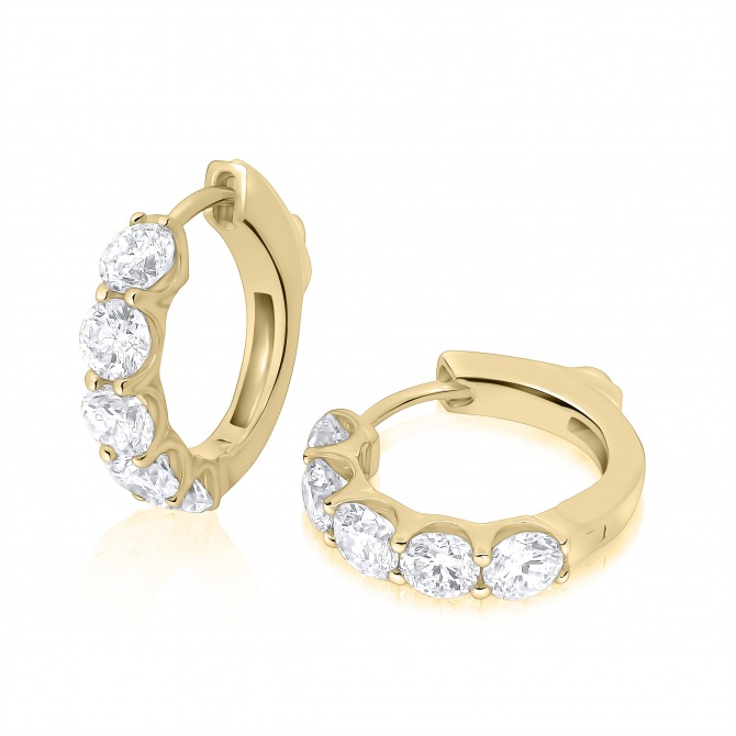 These stunning 9ct gold hoop earrings are claw set with round brilliant cut lab grown diamonds. They perfect addition to any jewellery box. D-E. VS1. 2.00ct.
