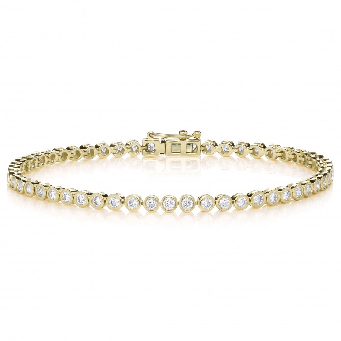 This stunning tennis bracelet is crafted in 9ct gold and features sparkling lab grown diamonds in a bezel setting. This bracelet will make a perfect gift for anyone who loves an extra sparkle with their outfit. D-E. VS1. 1.00ct.