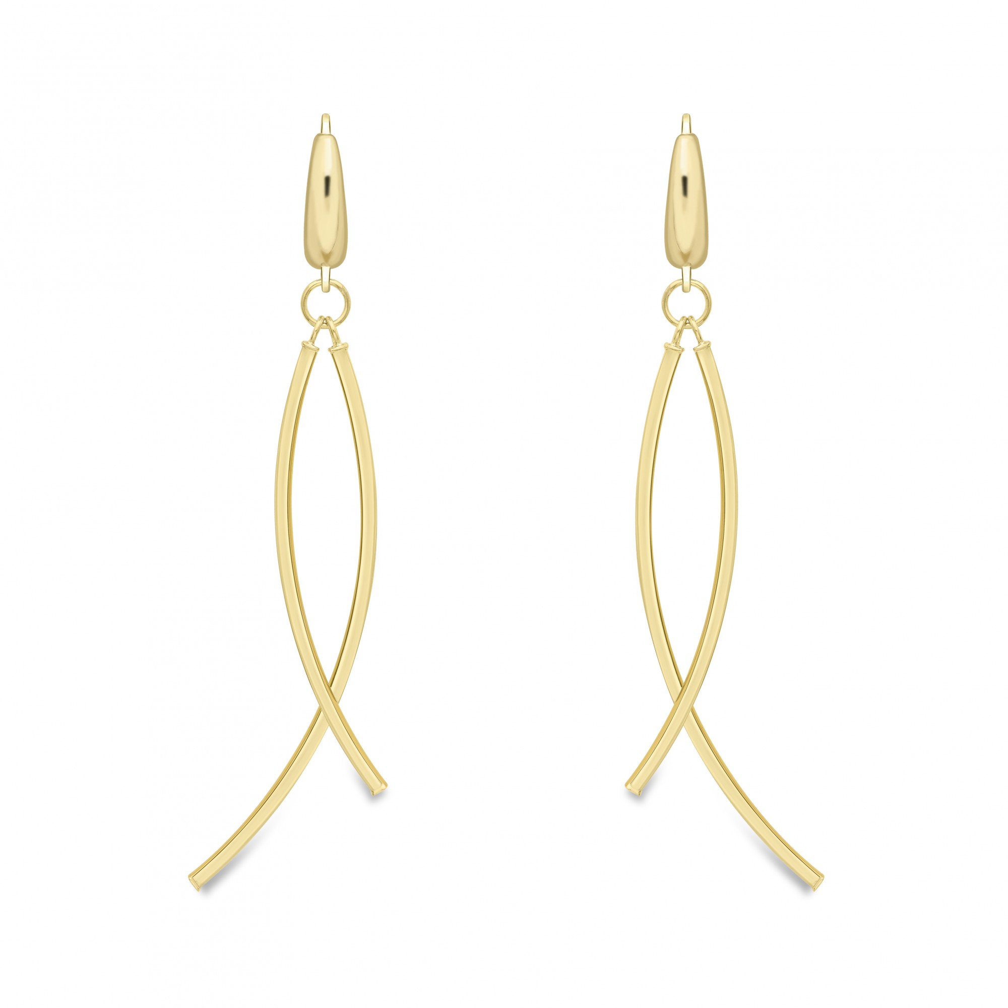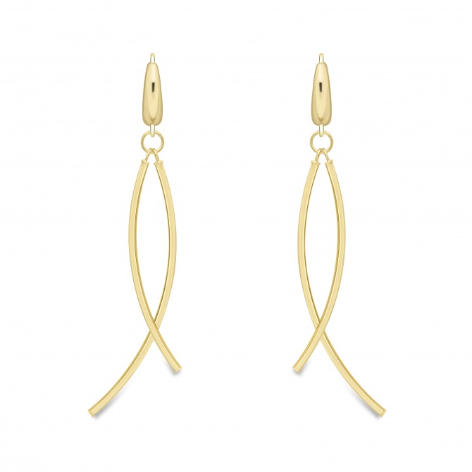 9ct gold long double drop earrings.