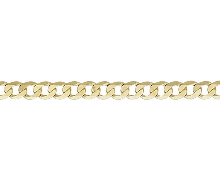 9ct yellow gold metric curb chain. 18" in length. 4.85mm wide, and 13.7g in weight.