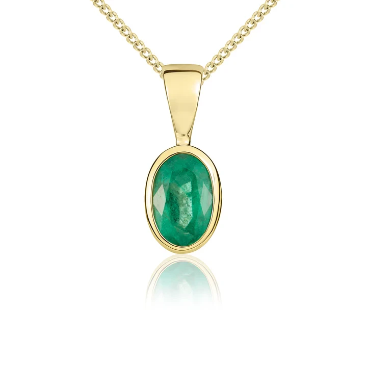 9ct yellow gold pendant set with an oval 6x4mm oval emerald.