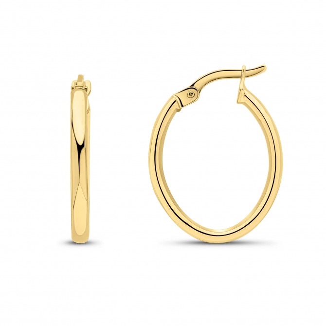 9ct yellow gold 2mm polished tube oval 19mm hoop earrings.