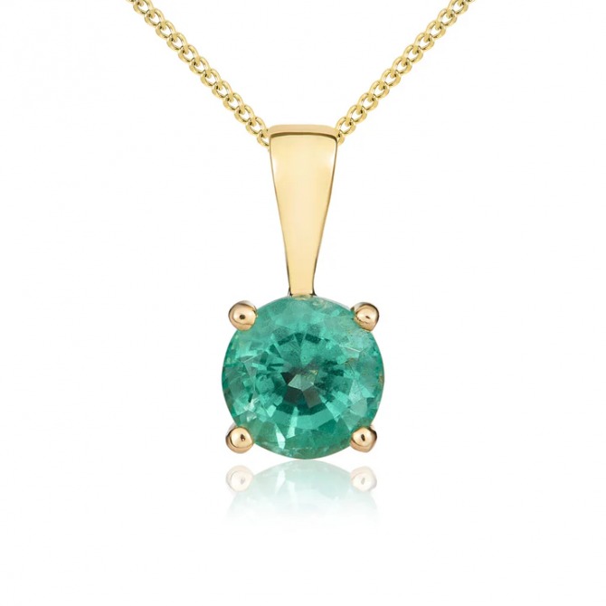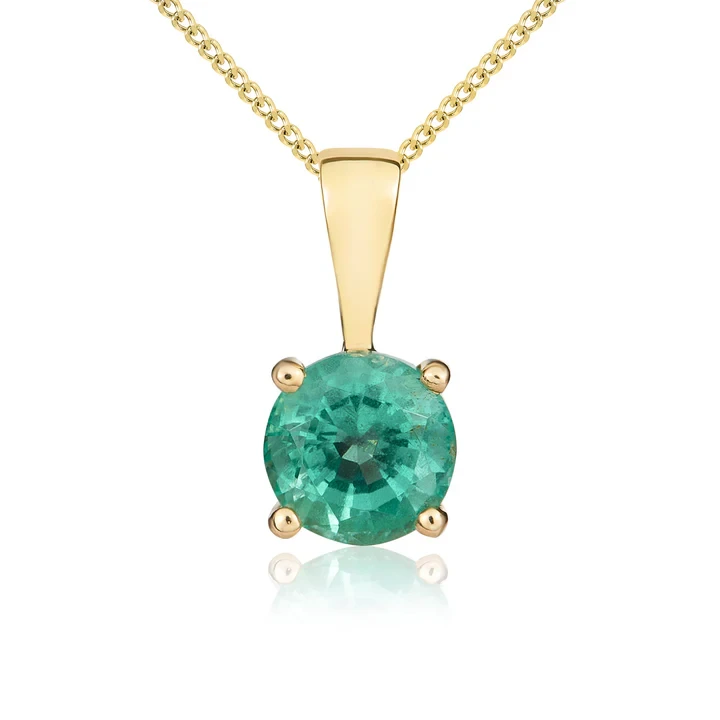 9ct yellow gold pendant claw set with a round 5mm emerald.